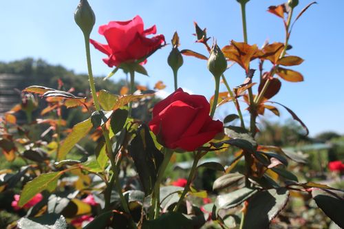 このバラたちは夏剪定をしたため花が無い状態なんです。