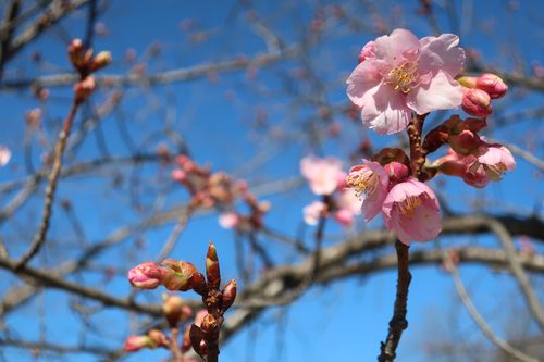 という事で早咲き品種の「河津桜」です。正面駐車場に植えられております。