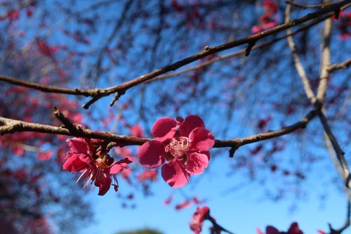 園内に2本ある「紅千鳥」です。見頃に入りました。