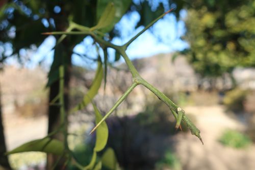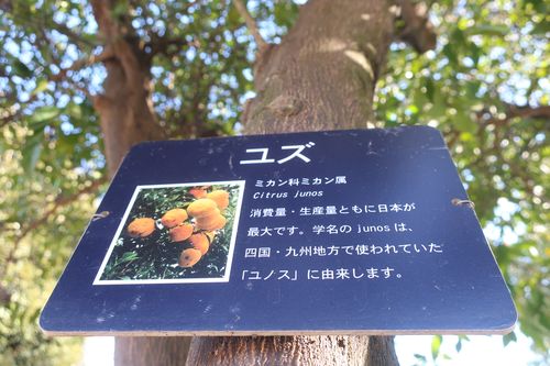 「橘」が園内にはないので同じミカン科のユズで代用してみました。
