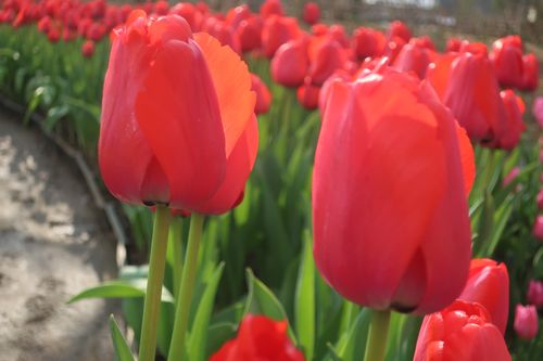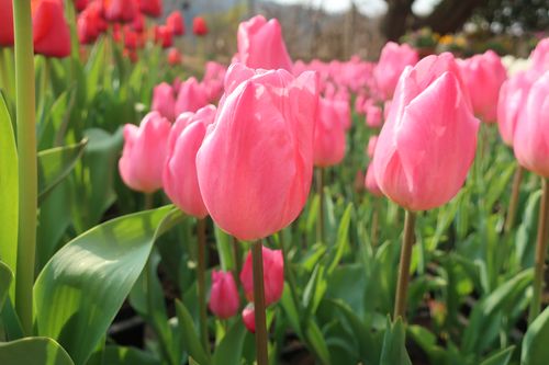 たくさんのチューリップが咲いています。