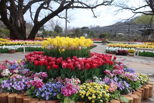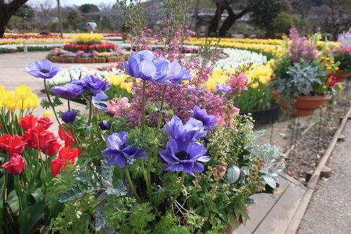 ✧四季彩のステージにはチューリップだけではなく、寄せ植えが数多く展示されています。