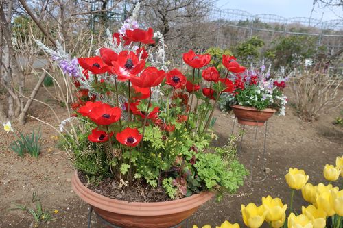 ここのステージはチューリップはもちろんですが、寄せ植えが魅力的なんです!