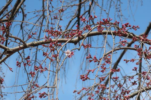 ソメイヨシノ、シダレザクラ共に少しずつお花が見られるようになってきました。