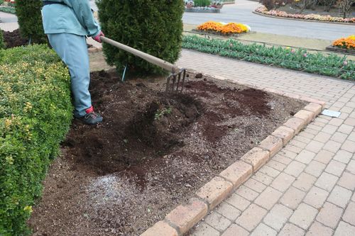 花壇の耕しをしていました。