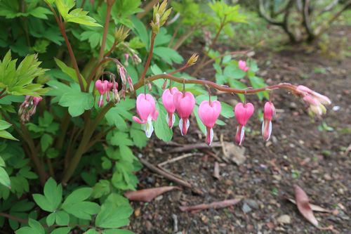 こちらはタイツリソウです。釣り竿で鯛を釣り上げている様に見えることから名付けられたとのことです。主に園内山側で釣られています。
