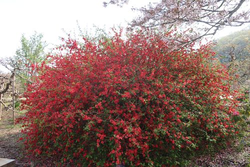 ボケ。とても大きな株で見応えがあります。きばな藤としゃくなげの森でご覧になれます。園内にはこの一株のみ。ぜひご覧ください。