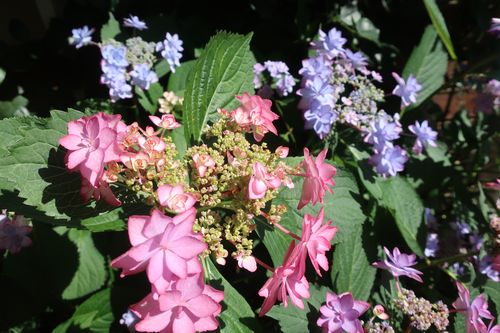 花菖蒲とあじさい…雨が似合うお花ですが、晴れた日に見る色の