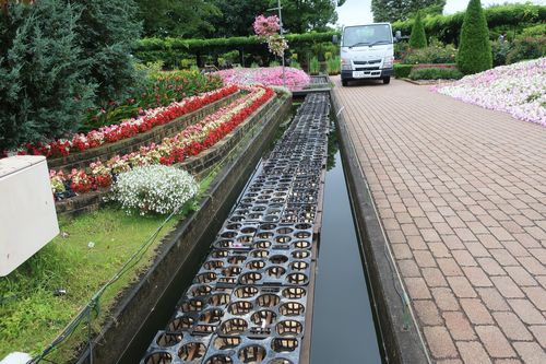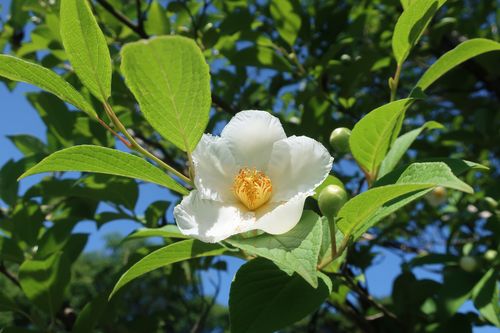 園内ではオリジナルショップ1の水路の近くで見られます。白と緑のコントラストが美しい。