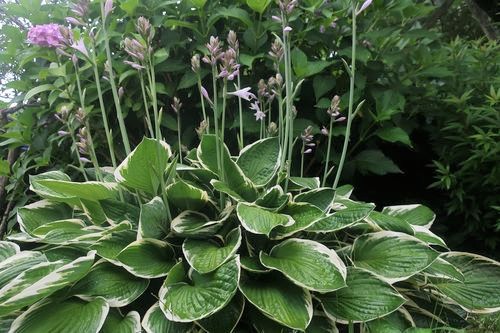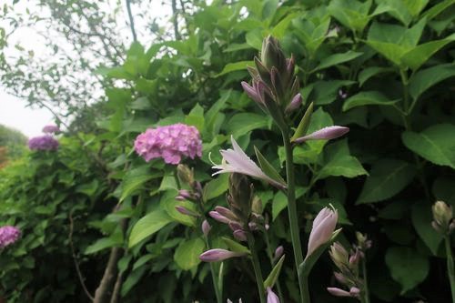 ギボウシです。日陰の庭には欠かせない植物ですね。見ての通り葉が特徴的ですが・・・