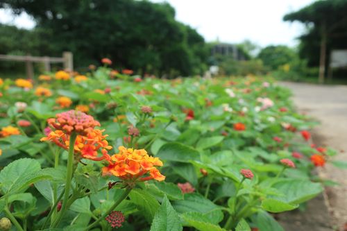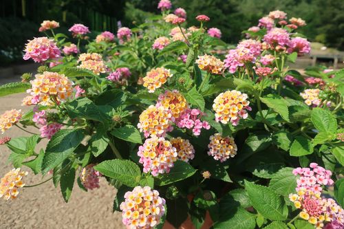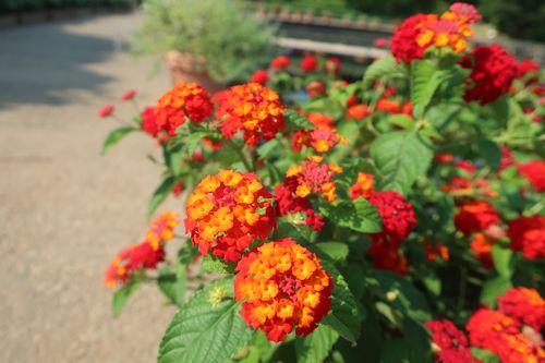↓桟橋エリアの道沿いには鉢植えのランタナを展示。