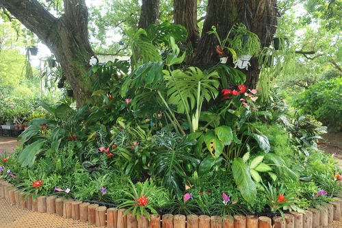アカメヤナギの根元に熱帯植物がたくさん…