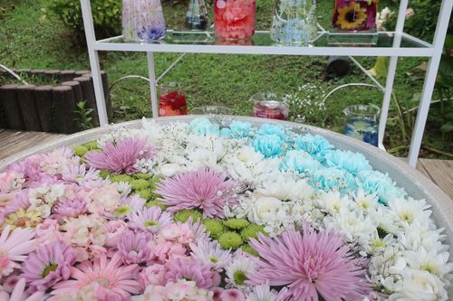 ハーバリウムなどの華やかな装飾で、清涼感のある作品です~