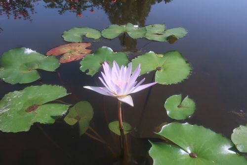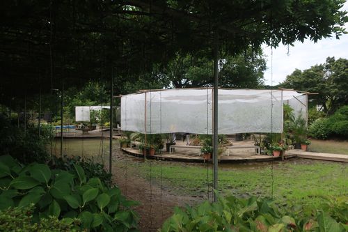 こちらには熱帯性スイレンが花を咲かせ、暑い夏を彩ります。