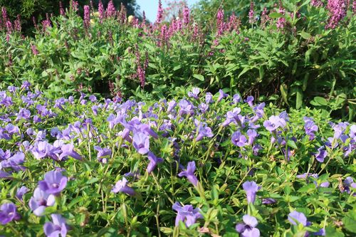 ↓トレニアは地面を這うように成長していくので、道にはみ出た
