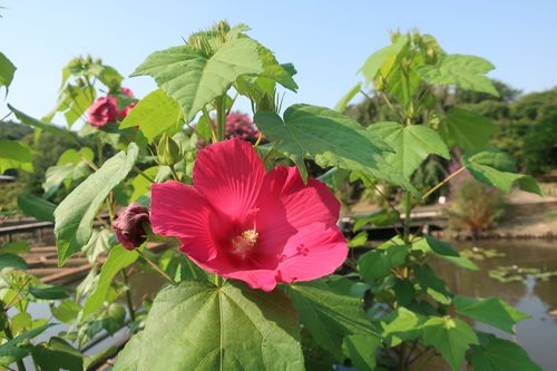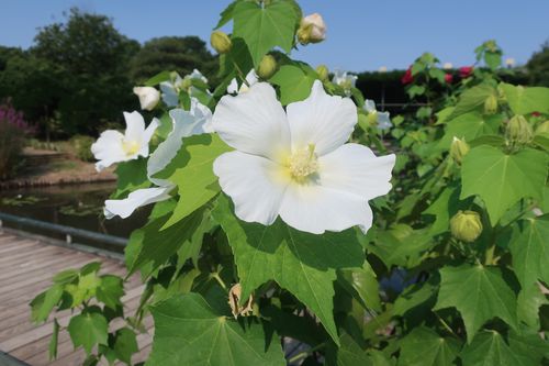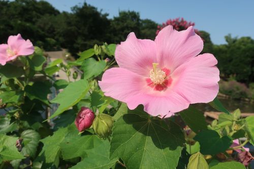 ↓同じく桟橋エリアから、鉢植えのフヨウ。