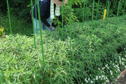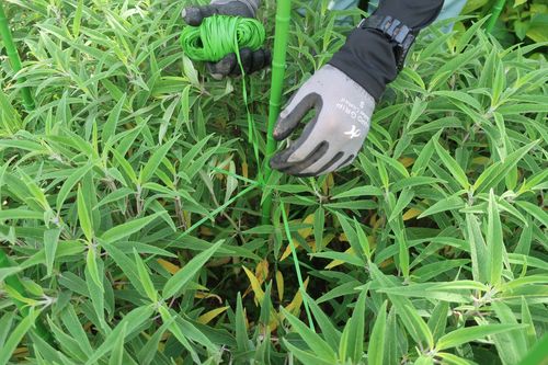 草丈40㎝、60㎝、80㎝と、伸びてきたら定期的に誘引します。