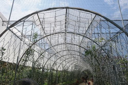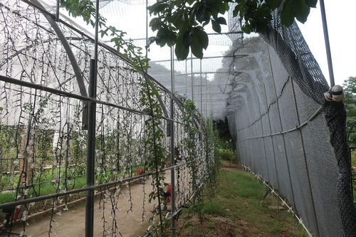 様々な種類の遮光ネットを夏の陽の射し具合のデータを元に設置しています。
