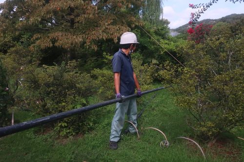 厳しい暑さの中でも各スタッフがその先を見据え、道具や身に着ける物を工夫して作業にあたっています。