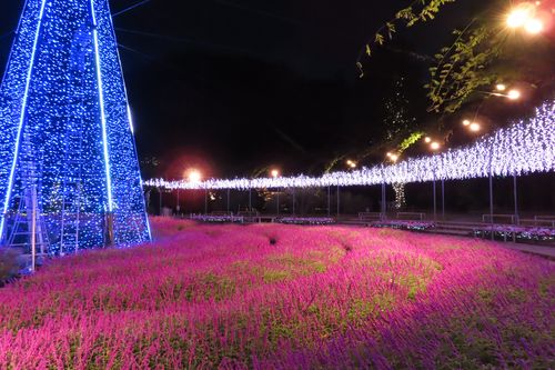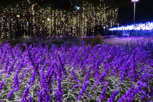 今しか見られないアメジストセージのライトアップとイルミネーション。