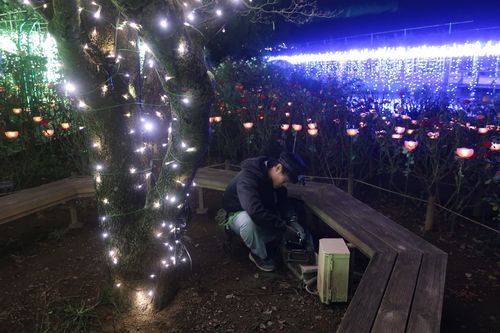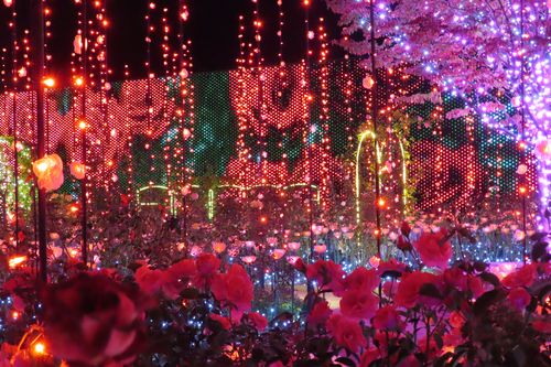 当園のイルミネーションはただ電球が光っているだけではなく、光りと花の融合を大切にしています。