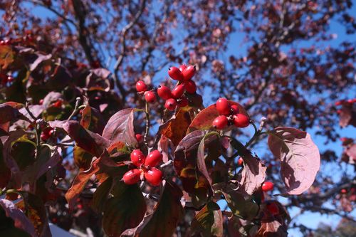 春の花のイメージが強いハナミズキですが、秋の紅葉と赤い実も楽しめますね。