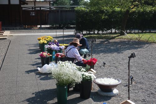 南庭園から振り返ると竹毬と花手水が輝いております。