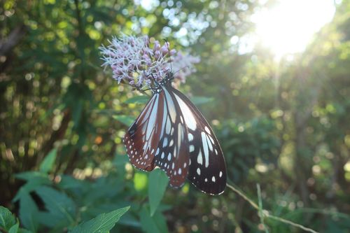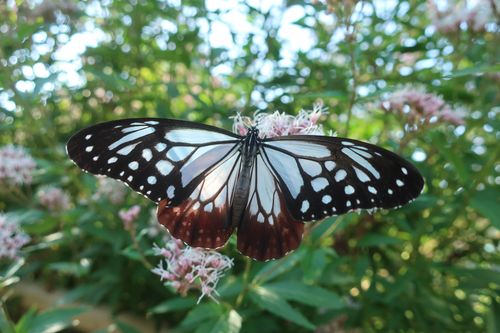 アサギマダラが遊びに来ていました!渡り蝶であるアサギマダラは今南下の真っ最中です。フジバカマに含まれている「ピロリジジンアルカロイド」という毒成分を求めて蜜を吸っていると言われています。