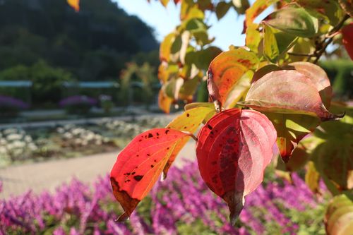 園内では、樹木の葉が赤や黄色に染まり、秋らしい雰囲気になりました。