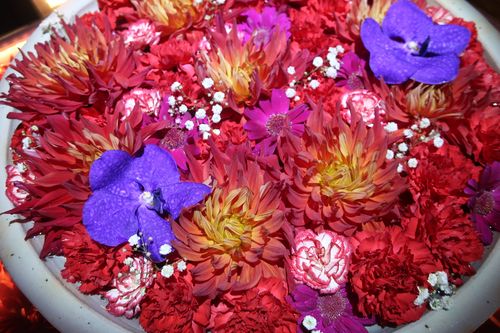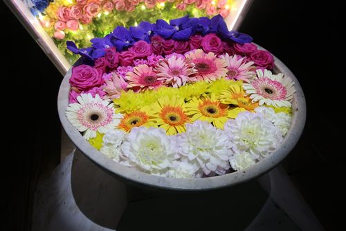 そして花手水。いつ見ても綺麗です。小さなお花たちが個性を活かしあって一つの作品を創り上げています!