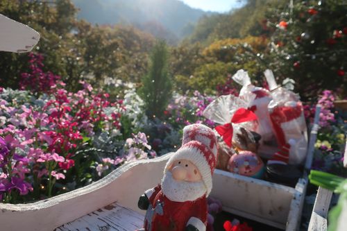 クリスマスツリーにクリスマスリーフ、クリスマス仕様の箱庭と