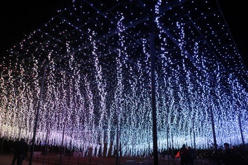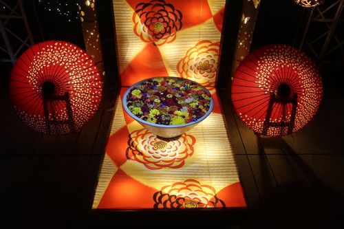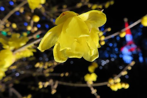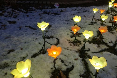 ライトアップされたこれらの花は、この時期の夜の時間帯でしか見ることができません。