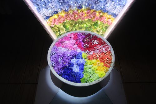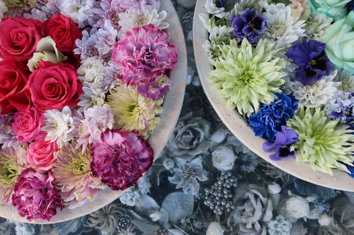 ここではバラ(ピンク・白・青・水色) キク(ピンク・白・緑) カーネーション(ピンク・青)