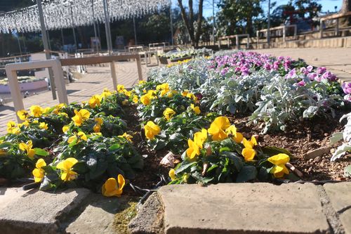 冬咲きボタンやストックなどの鮮やかなお花が静かな園内を彩っています。(*^_^*)