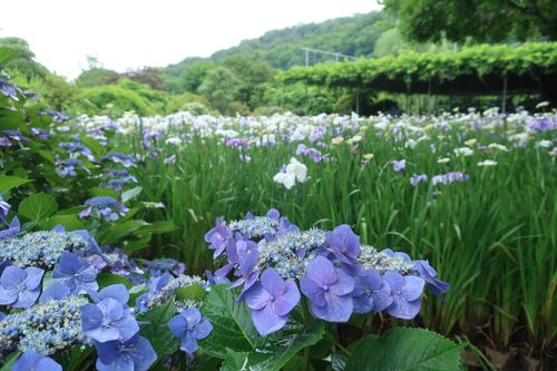 花菖蒲とアジサイが次々と咲き、見頃を迎えているエリアもあります。