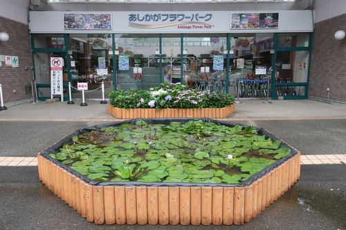 園内に入って、フラワーステージ付近ではハスを展示しています。