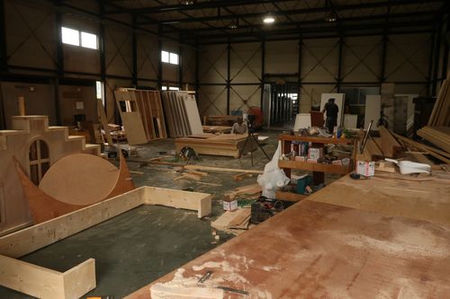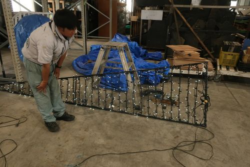 倉庫ではイルミネーション作品のメンテナンス、作製が行われていました。