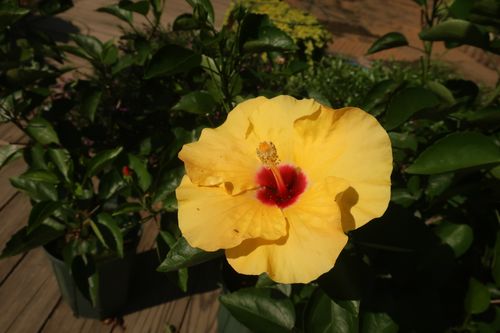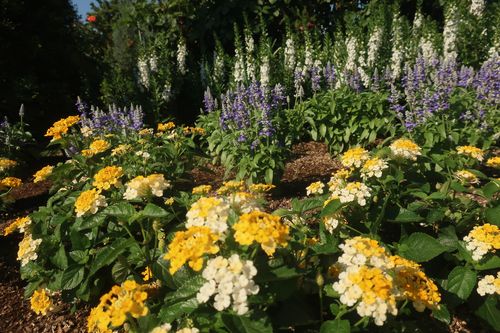 ↓フラワーステージの花壇。手前からランタナ(黄)、