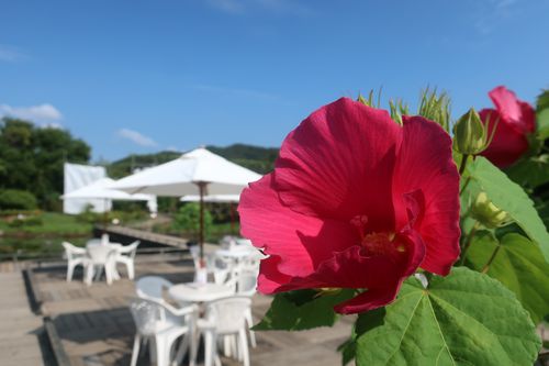 「フヨウ」青空とパラソルが揃うと南国にいる様です。桟橋でご覧頂けます。