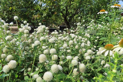 秋のイメージが強いセンニチコウですが、夏の暑さにもよく耐え、こんなに花を咲かせてくれました。