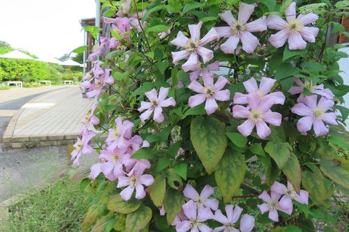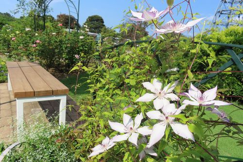 今、園内のクレマチスは2番花が見頃終盤となっています。