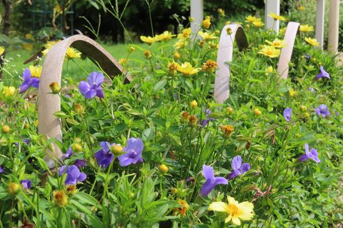 (1)コレオプシスと紫のトレニアが綺麗な花壇❀