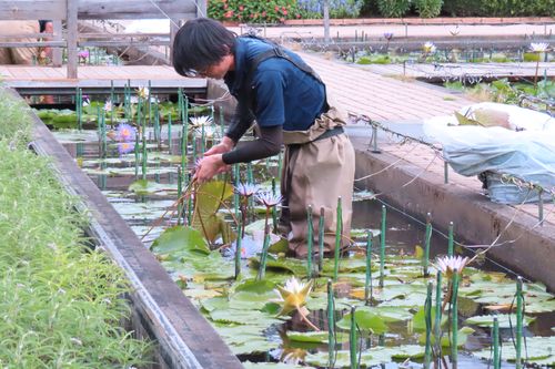 園内では、熱帯性スイレンの手入れやバラの夏剪定、藤の9月剪定が行われております(^^)/