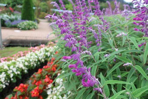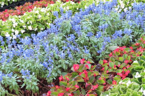 (4)ベゴニアとブルーサルビアの鮮やかな花壇❀