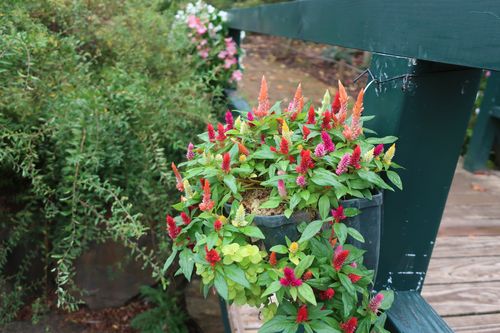 ↓オリジナルショップ1近くの橋に掛けられたケイトウのハンギング。