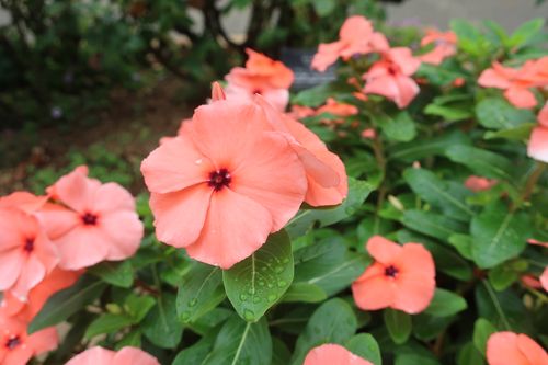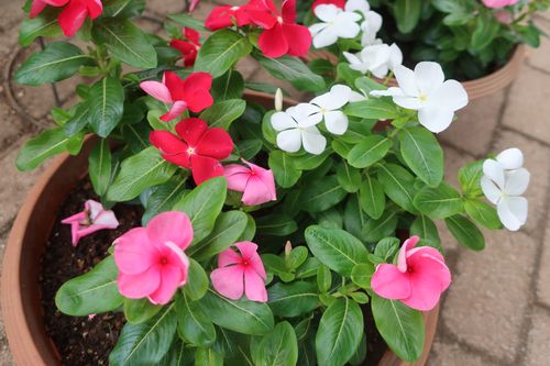 ↓こちらはフードテラス前の鉢植えニチニチソウ。