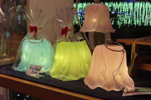 こちらの光るチューリップのガラスドームは中にお好きなマスコットを入れて飾ることもできますよ~