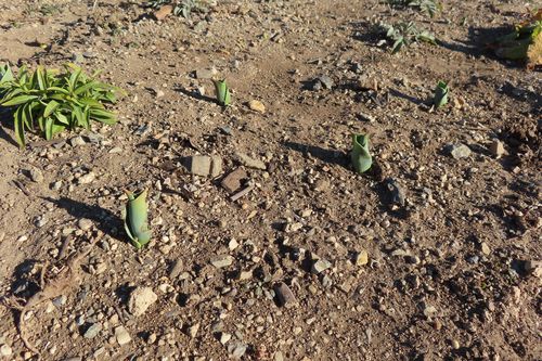 春仕様の花壇になりました。奥にチューリップ、手前にはポピー、ローダンセマム、ムルチコーレ、イベリスを植栽しています。