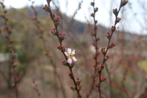 似たようなアングルで日中に撮ってみましたが青空と枝が主張してしまい、花を強く感じるのは難しい様です。