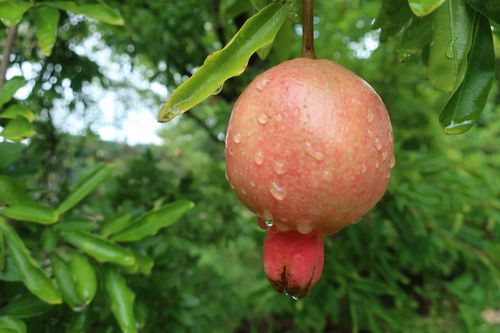 「ザクロの実」にまとわりつく露です。いつもより新鮮に見えます。